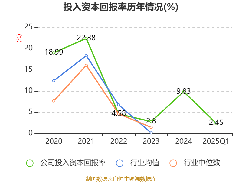 盈利能力方面, 2025年一季度公司加权平均净资产收益率为3.5%,同比上升0.87个百分点。公司2025年第一季度投入资本回报率为2.45%,较上年同期上升0.64个百分点。