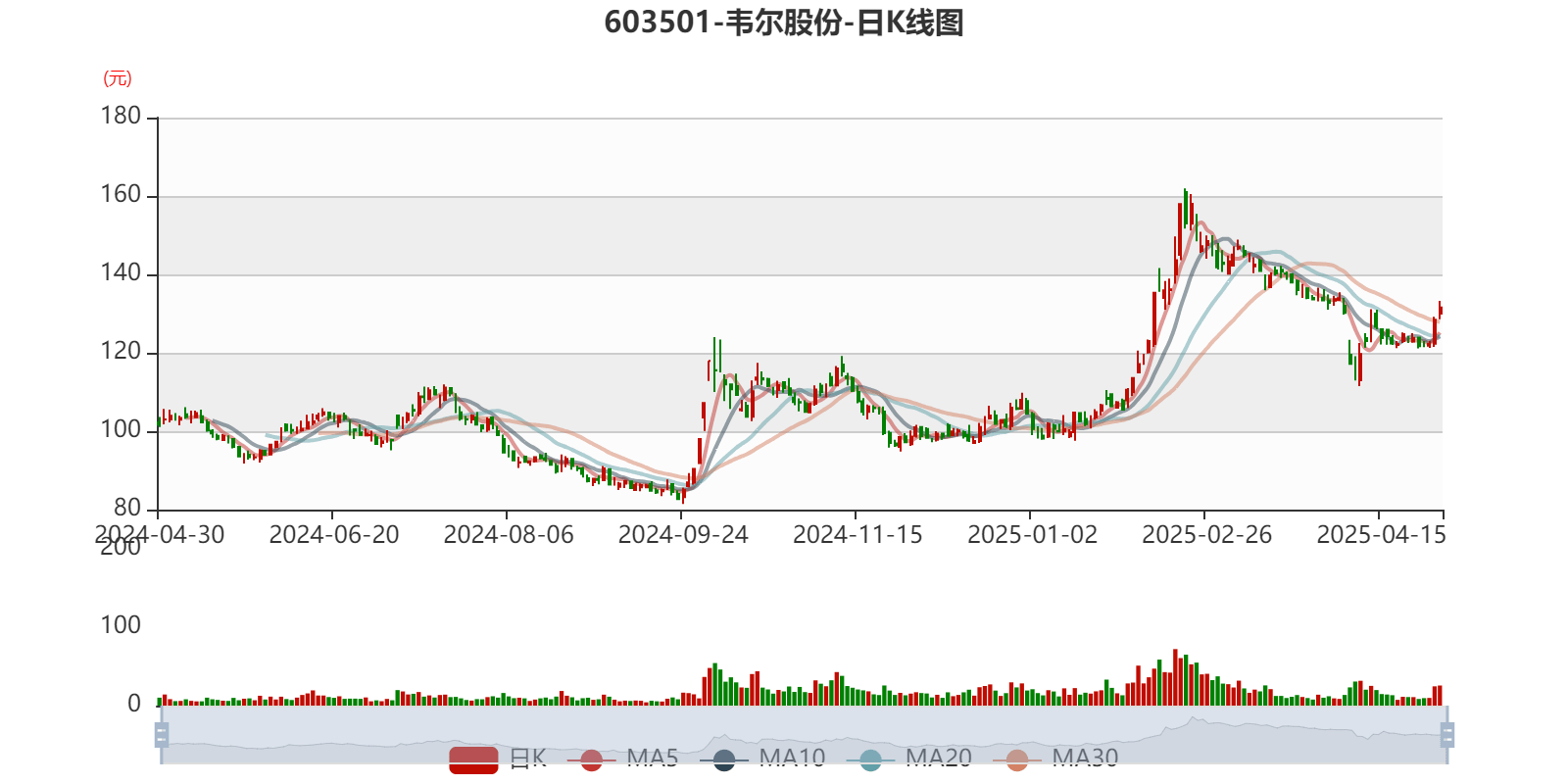 以4月29日收盘价计算,韦尔股份目前市盈率(TTM)约为43.03倍,市净率(LF)约6.19倍,市销率(TTM)约5.88倍。