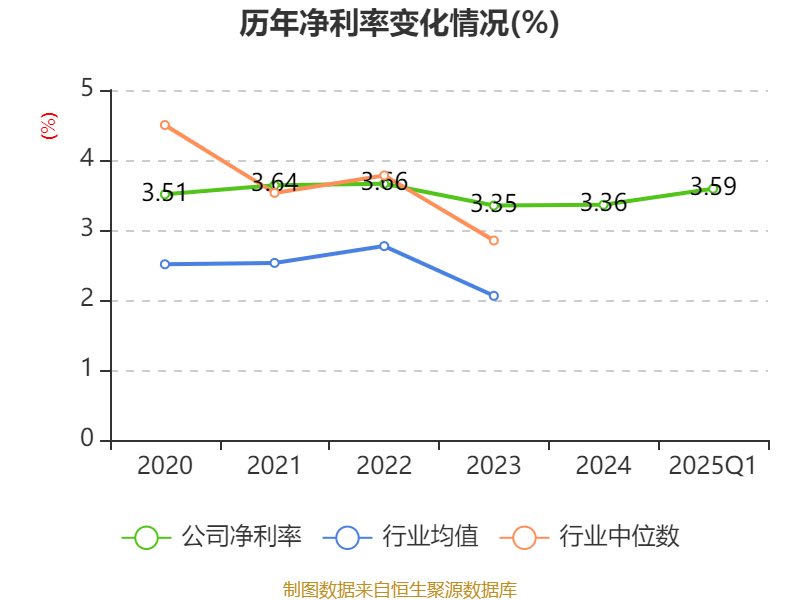 盈利能力方面, 2025年一季度公司加权平均净资产收益率为2.29%,同比上升0.2个百分点。公司2025年第一季度投入资本回报率为1.82%,较上年同期上升0.12个百分点。