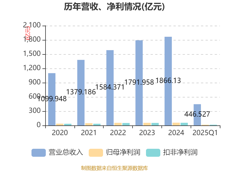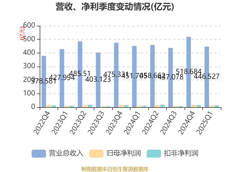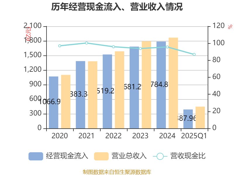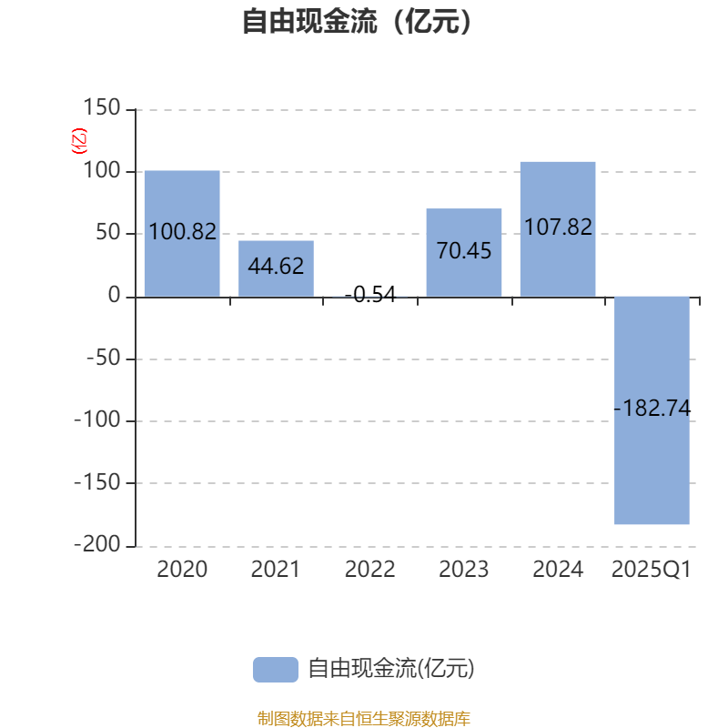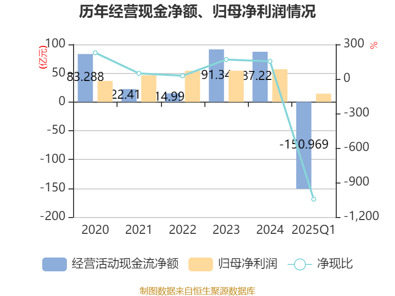 截至2025年一季度末,公司经营活动现金流净额为-150.97亿元,同比减少83.27亿元;筹资活动现金流净额6.55亿元,同比增加19.03亿元;投资活动现金流净额-8.99亿元,上年同期为6.03亿元。