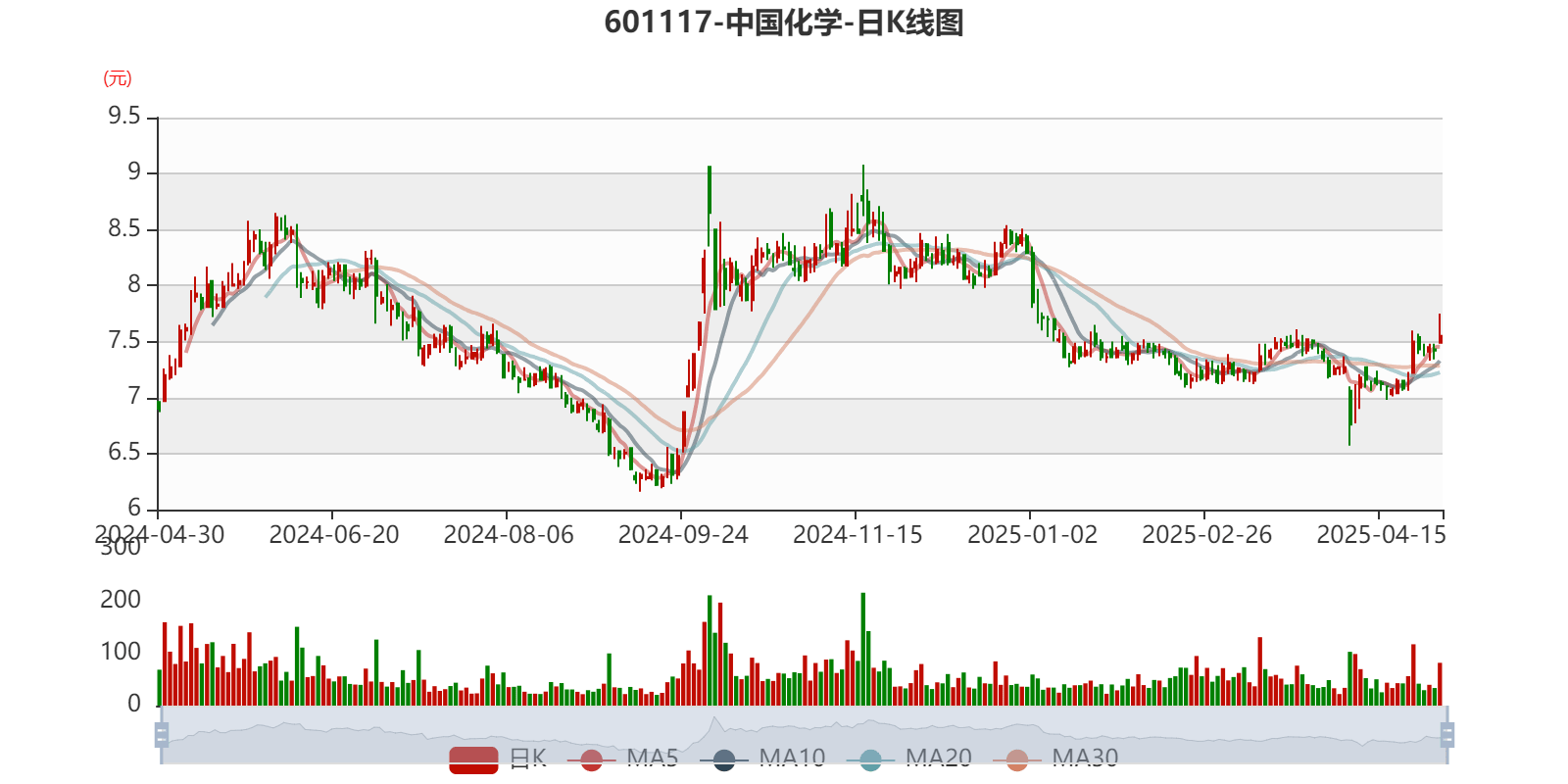 以4月29日收盘价计算,中国化学目前市盈率(TTM)约为7.66倍,市净率(LF)约0.71倍,市销率(TTM)约0.24倍。