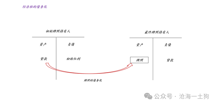 如上图所示,初始牌照持有人本来是食租人,政府依旧有追讨的机会,改革阻力相对较小,但是,随着牌照的债务化,他们摇身一变成为了债权人,收入也从租金改头换面成了利息在这种情况下,想要废除牌照更是难上加难,政府所面临的不仅仅是最终牌照持有人的阻力,还有来自于金融系统的阻力——。